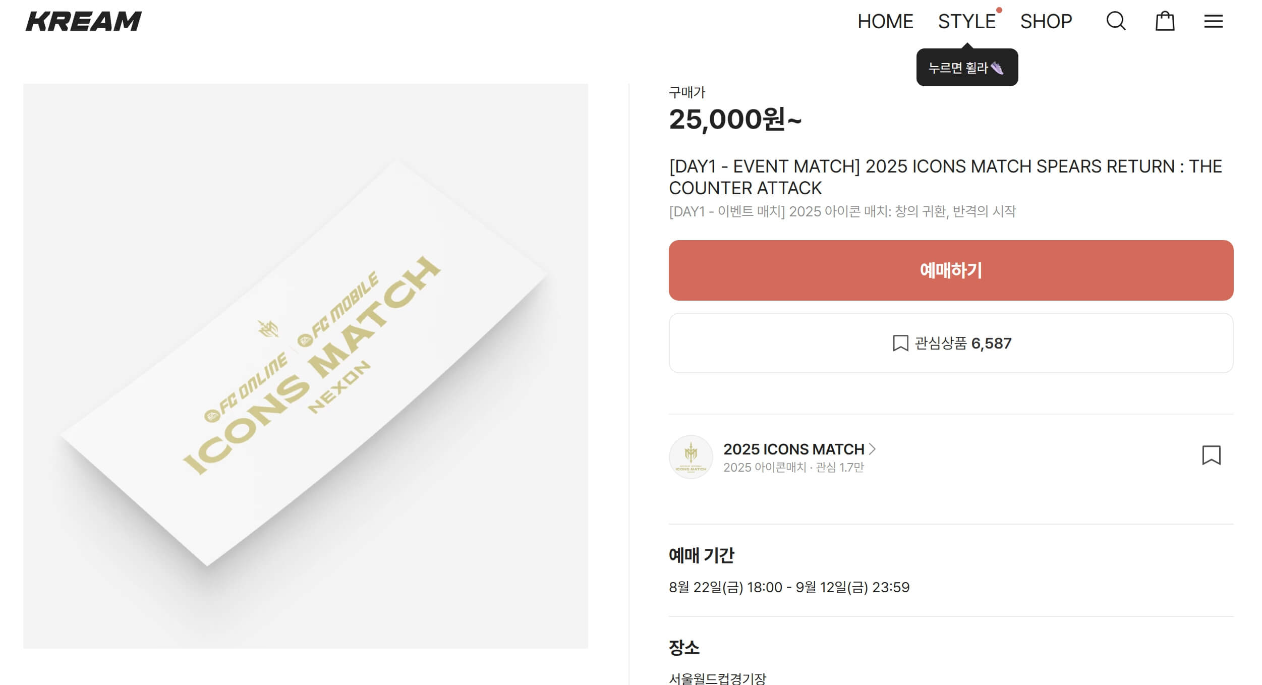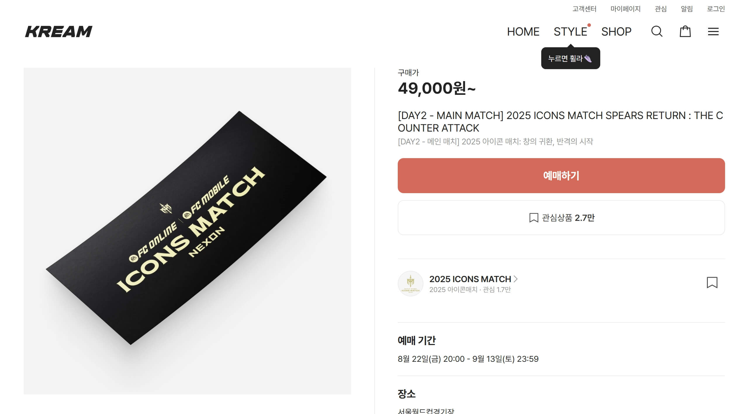 아이콘매치2 티켓은 크림(KREAM) 앱에서만 예매가 가능합니다.